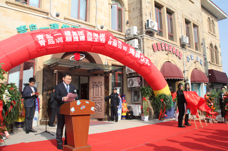 On November 23, 2018, at 10:58 a.m., Qingdao No.1 Construction?Group held the unveiling ceremony of Qingdao No.1 Construction?Group's West Coast Branch and Qingdao Runshunjie Construction Engineering Co., Ltd. in Tangdaowan Pedestrian Street on the West coast. Nearly 100 guests from brotherly units, leaders of group companies and employees of branch companies participated in the unveiling ceremony. Shang Yanqing, chairman , Ma Shujun, president of Qingdao No.1 Construction Group and Zhang Yong, general manager of the branch, jointly unveiled the brand-new chapter of the development of the West Coast Branch.