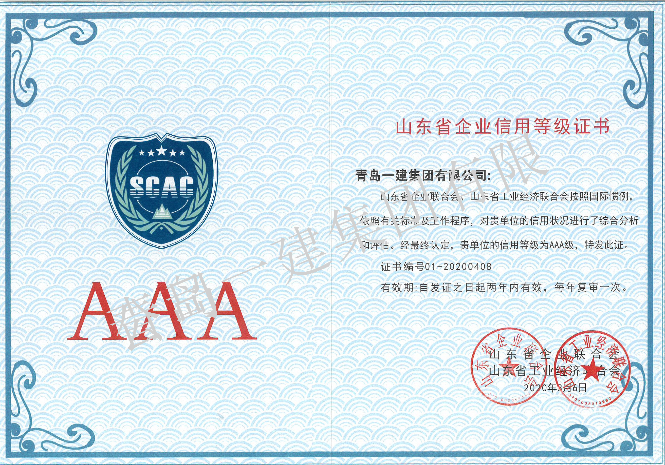 山東省企業(yè)信譽(yù)等級AAA企業(yè)