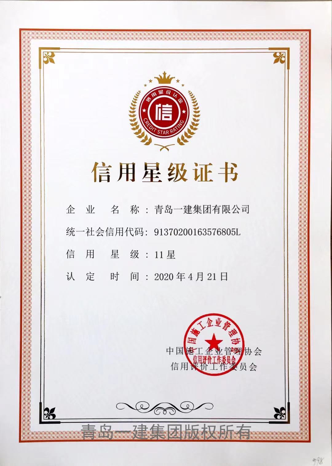 信用星級證書