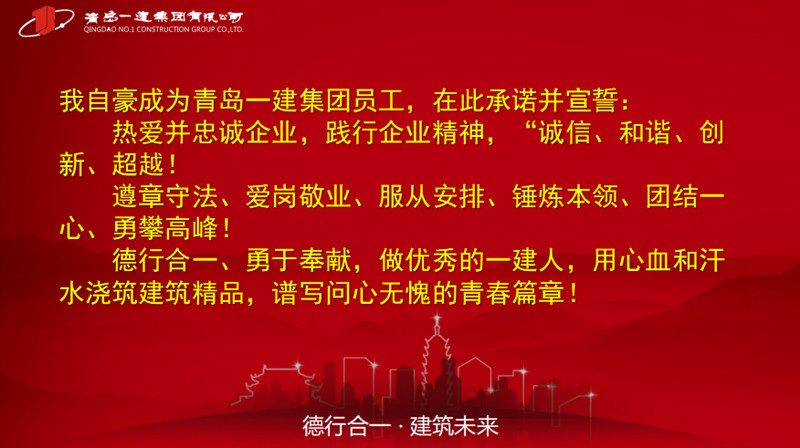 ? ? ? 結(jié)束參觀,集團公司在駐地會議室為新員工們舉行了隆重的青島一建集團2019年度新員工入職培訓開班儀式