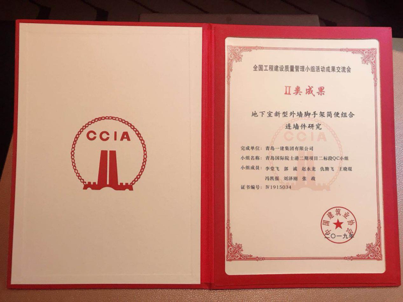? ? ? 近日,中國建筑業(yè)協(xié)會舉辦的全國工程建設質量管理小組活動成果交流會在寧夏回族自治區(qū)銀川市舉行,青島一建集團選送的《地下室新型外墻腳手架簡便組合連墻件研究》在會上取得了全國Ⅱ類成果(二等獎)的佳績!