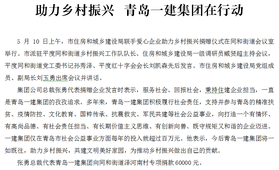 助力鄉(xiāng)村振興 青島一建集團(tuán)在行動