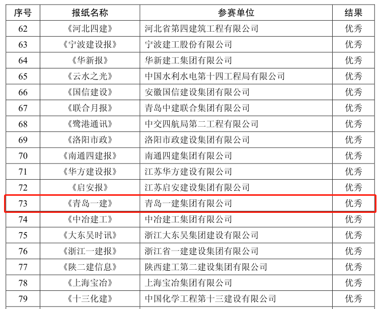 ? ? ? 8月4日,中施企協(xié)官網(wǎng)發(fā)布了《關(guān)于公布2022年工程建設(shè)企業(yè)文化作品競(jìng)賽結(jié)果的通知》(中施企協(xié)字〔2022〕58號(hào)),集團(tuán)公司獲中施企協(xié)2022年工程建設(shè)企業(yè)文化競(jìng)賽優(yōu)秀網(wǎng)站和優(yōu)秀報(bào)刊獎(jiǎng)項(xiàng),這是集團(tuán)公司連續(xù)第二年獲此獎(jiǎng)項(xiàng)。
