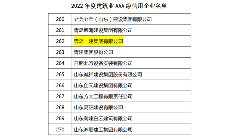 ? ? ? ? 9月14日,中國(guó)建筑業(yè)協(xié)會(huì)官網(wǎng)發(fā)布《關(guān)于2022年度建筑業(yè)AAA級(jí)信用企業(yè)評(píng)價(jià)結(jié)果的公示》通知,集團(tuán)公司榮獲AAA級(jí)信用企業(yè)認(rèn)證榮譽(yù)!?
